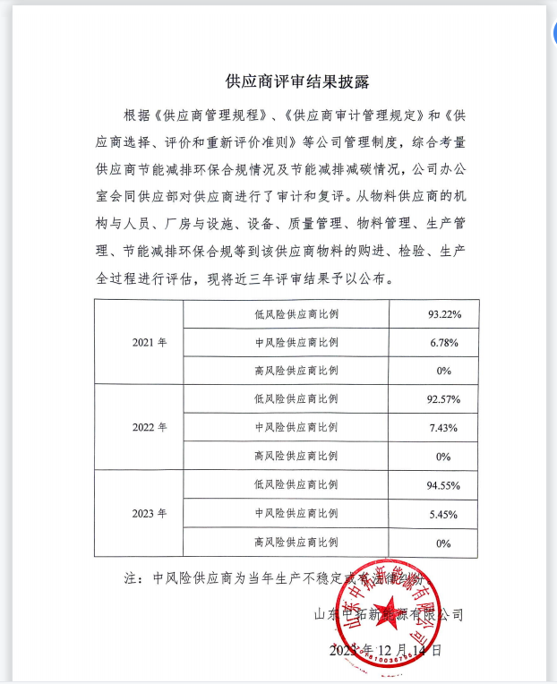 供應商評審結果披露